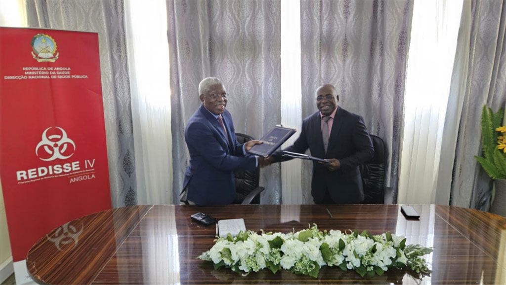 A cerimónia de assinatura do Memorando de Entendimento entre o Ministério da Saúde de Angola, através do Projecto Regional de Melhoria dos Sistemas de Vigilância de Doenças (REDISSE IV-ANGOLA), e o Ministério da Agricultura e Florestas, através do Instituto dos Serviços de Veterinária (ISV).